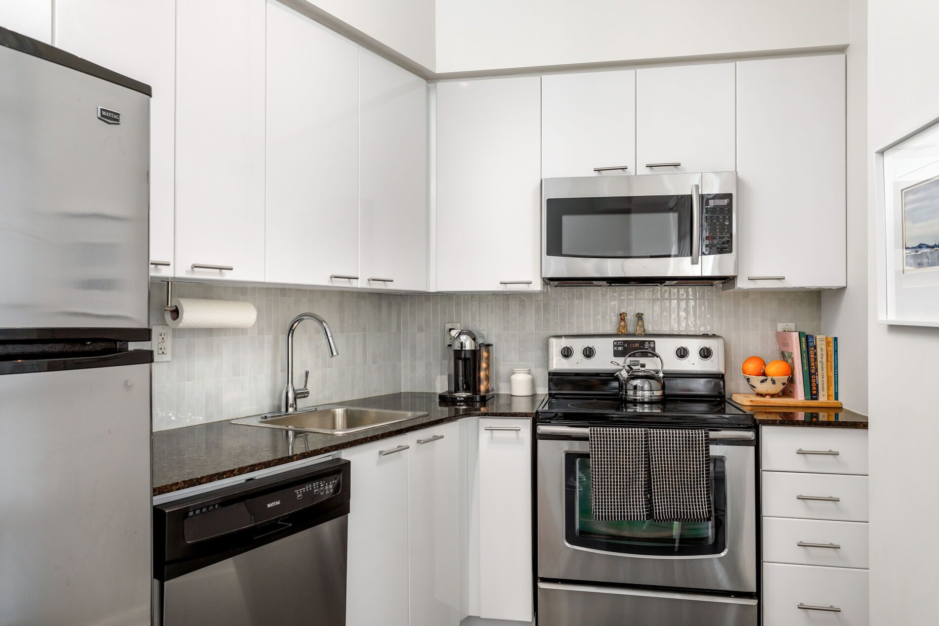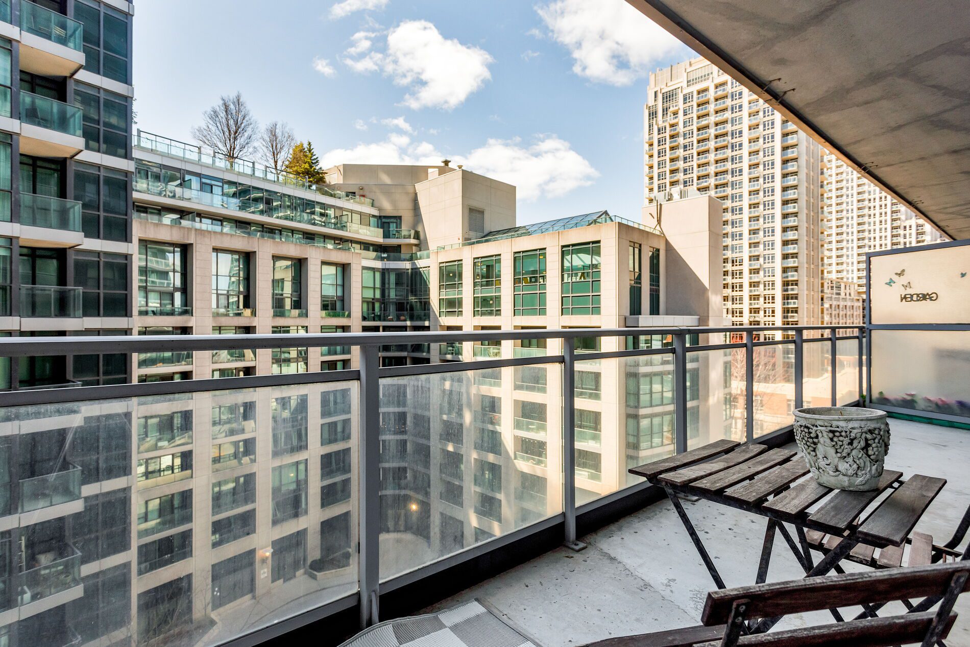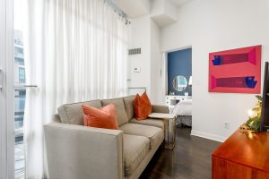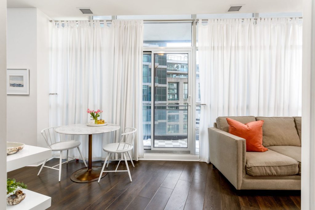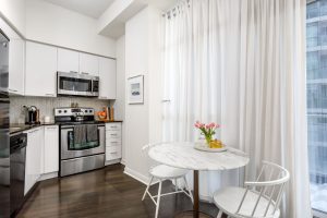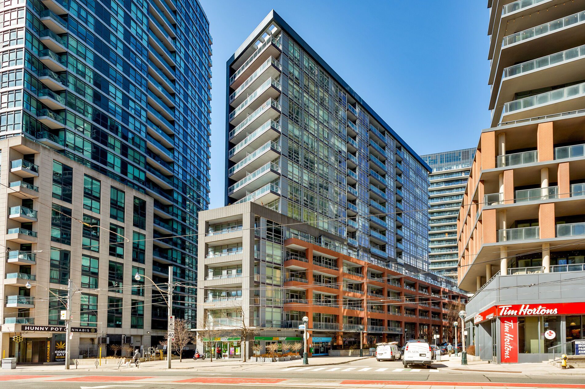 A convenient location to enjoy everything city living has to offer (restaurants, entertainment, Jays/Leafs/Raps games) but also allows for a quick and easy exit — hop on the streetcar (one street car to subway, UofT, Union Station), drivers can jump on Lakeshore/Gardiner, and frequent flyers can stroll down the street to catch a flight from Billy Bishop Airport (which is walking distance!). Best of all though is the easy access to the lake, waterfront trails and parks. No concrete jungle here! The building itself offers a great community of neighbours, friendly concierge, gym, party room, visitor parking, and a terrace with BBQ’s.
