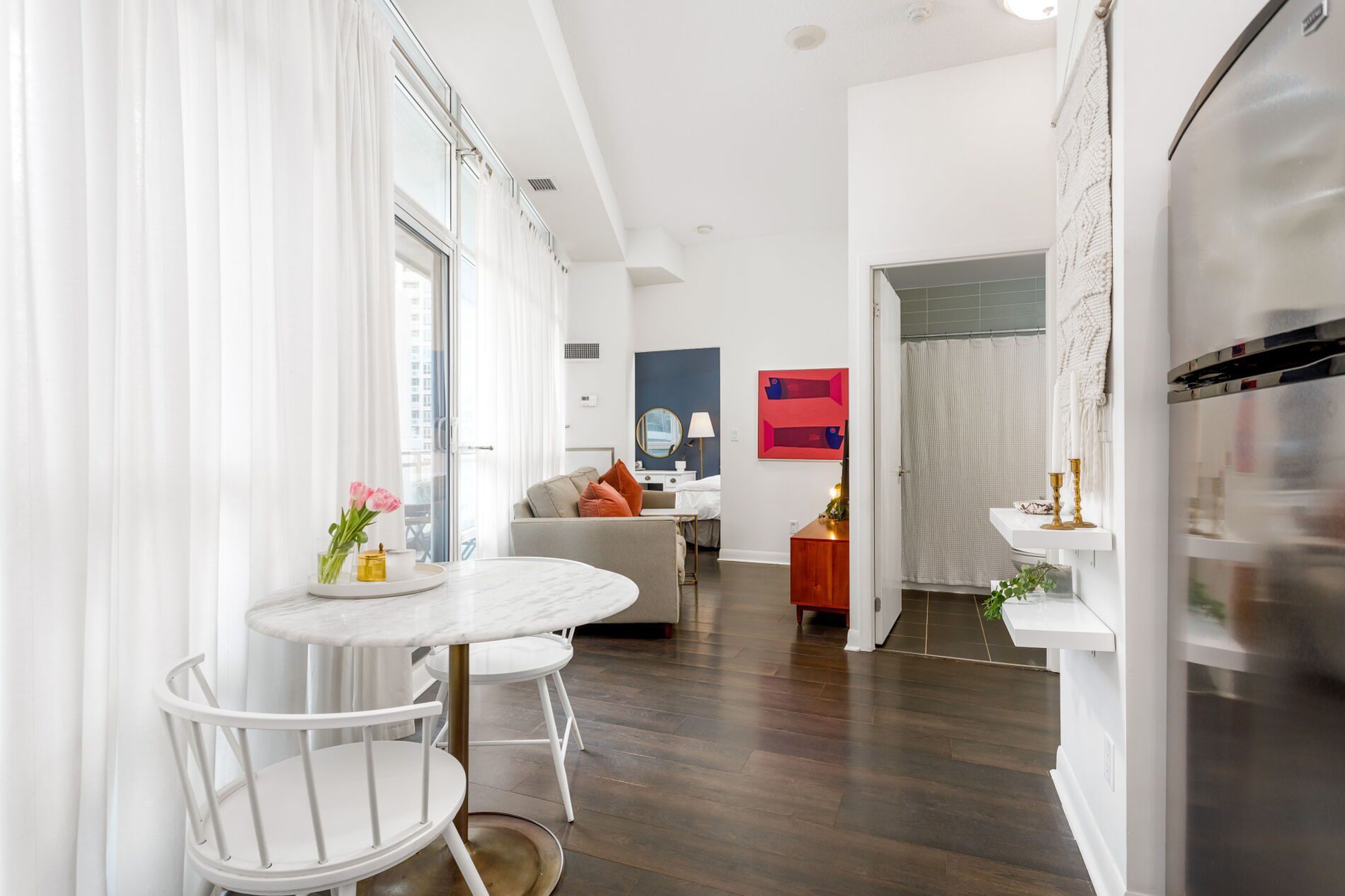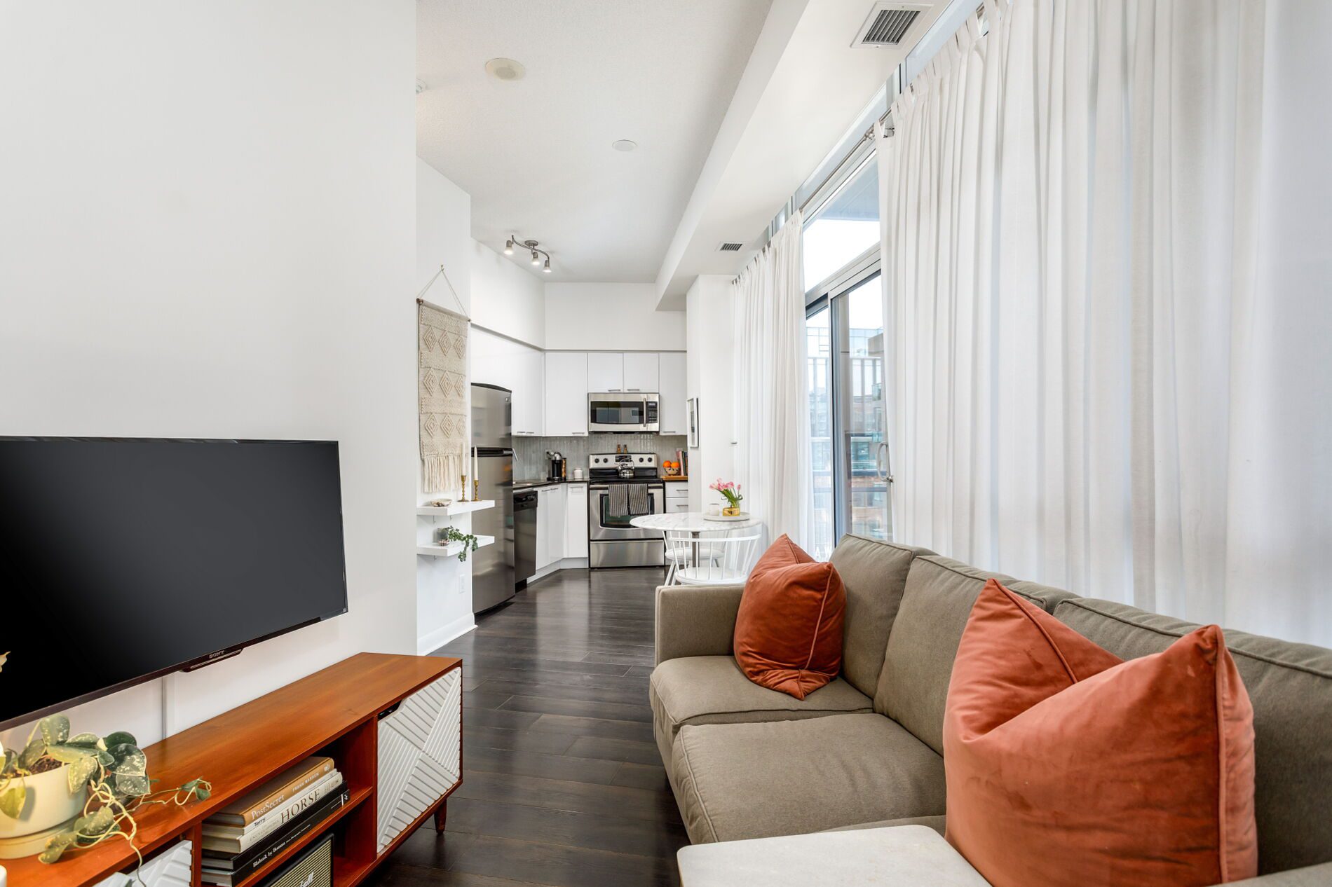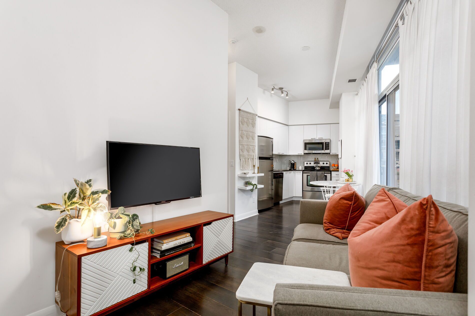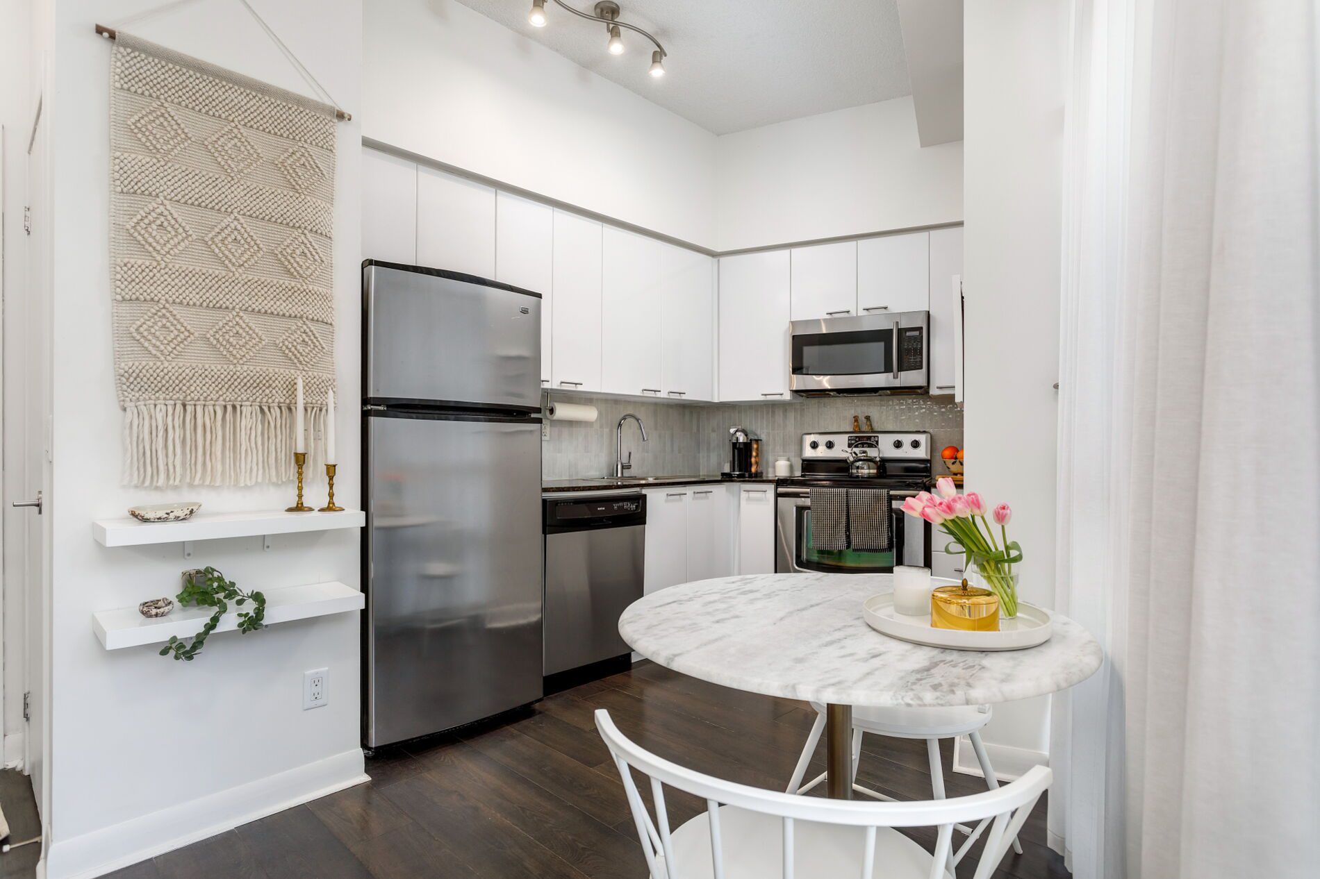 Welcome to Unit 705 at 15 Bruyeres Mews. A stylish and polished one-bedroom unit with a REAL bedroom (one with a closet and window — not one of those interior ‘den-style’ bedrooms). Modern unit with floor-to-ceiling windows and exceptionally high ceilings. A functional kitchen with full-size appliances where you can work on those chef skills (plus Loblaws, LCBO and Shoppers right across the street makes it super easy).