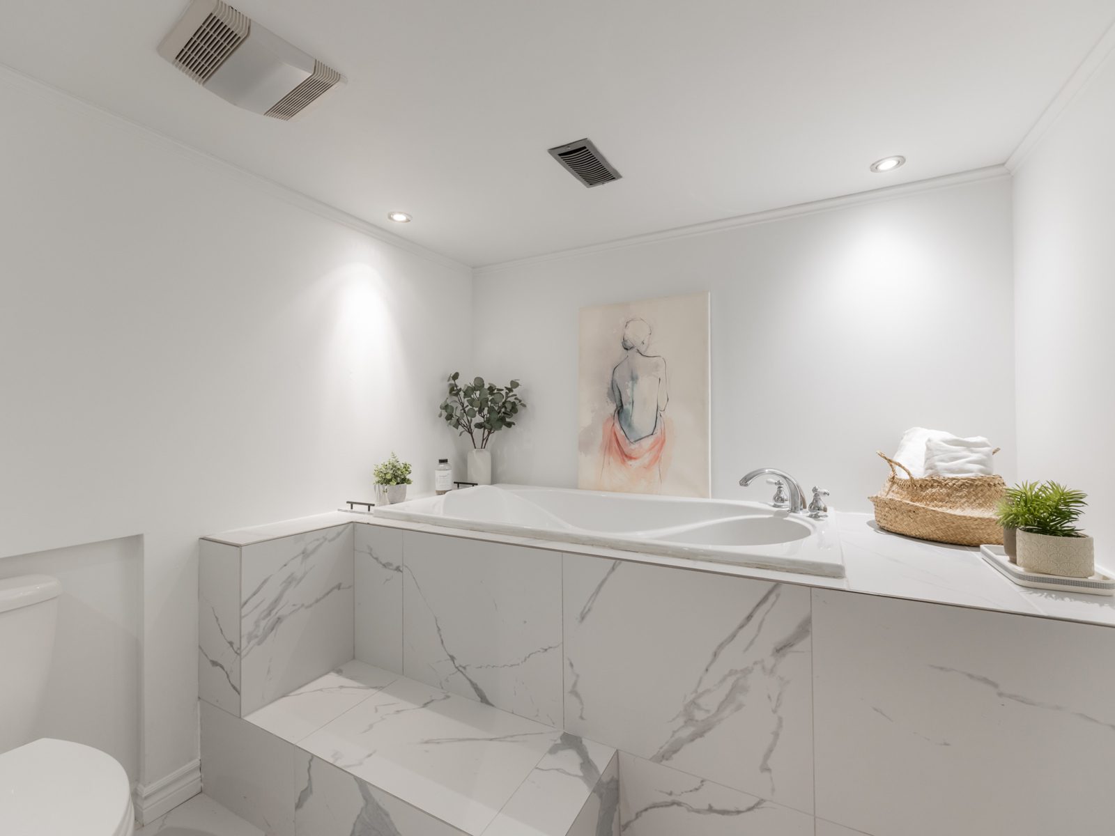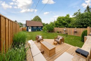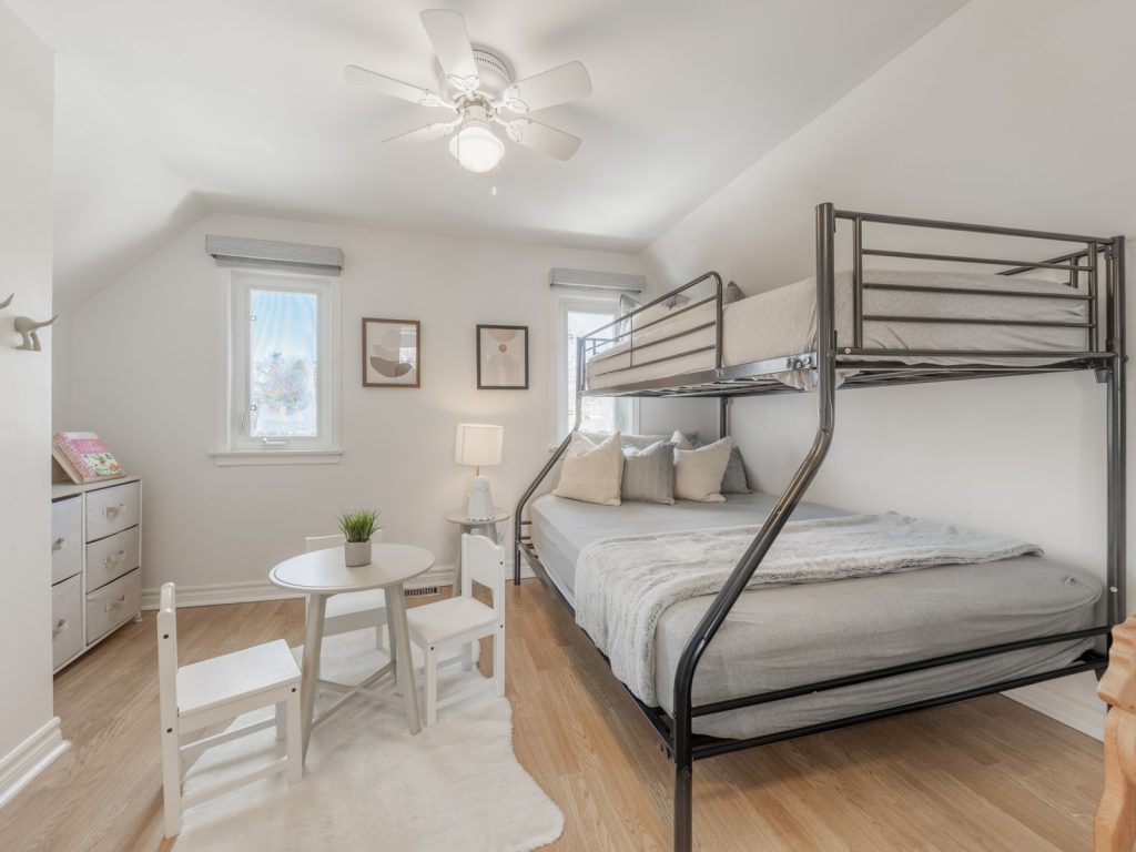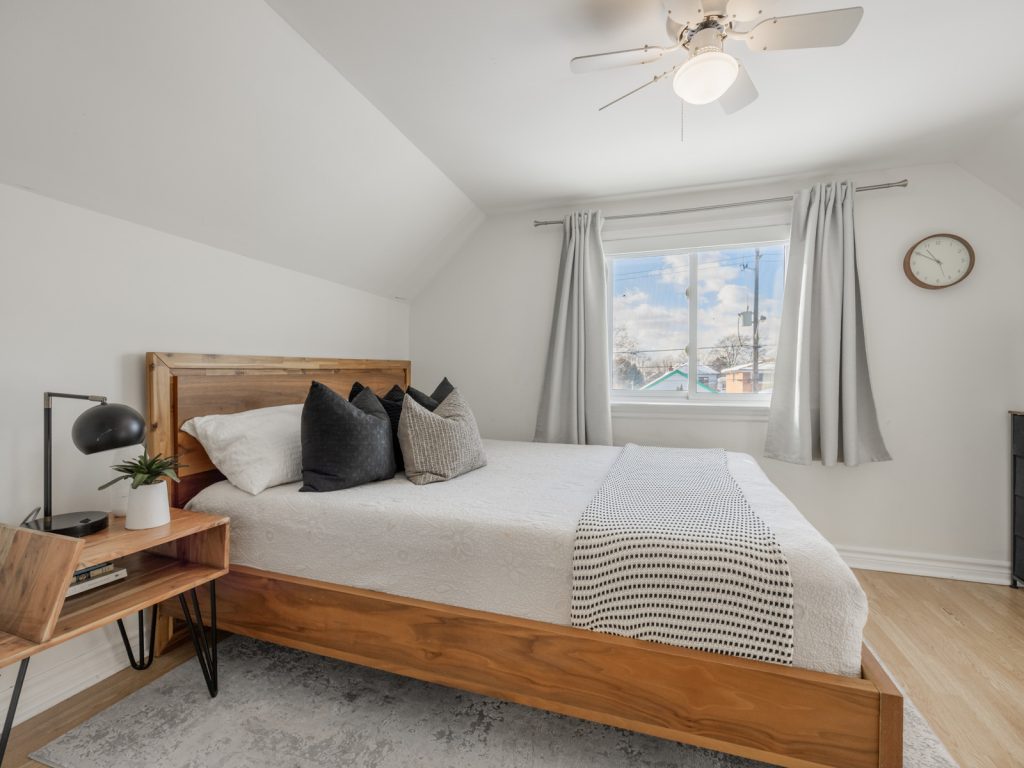 Out back, a fully fenced, professionally landscaped yard features a spacious two-tier deck made for summer gatherings and quiet moments alike. A double private driveway leads to an oversized detached garage with walk-up loft space, its own driveway, and a pellet stove—an exceptional bonus with exciting possibilities, including future expansion or a potential garden or laneway-style suite.