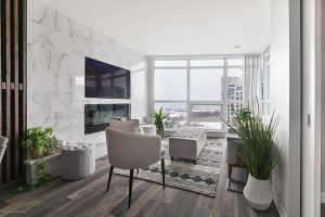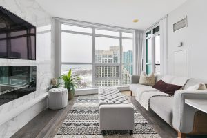 Well-appointed and stylishly outfitted – this 1+den is anything but boring beige. Sleek black kitchen with 2-year-old appliances, stone counters, a sizable island, and lots of storage is the heart of the home. The suite sits 26 floors up and overlooks the western waterfront; sunsets are a dream from the balcony. Building perks include a pool, gym, and 24-hour concierge. Situated in a prime waterfront location, you’re just steps from the lake, parks, and the Martin Goodman Trail. Loblaws/Joe Fresh is right across the street, plus LCBO, Shoppers, cafes, and restaurants all nearby. TTC streetcars stop just outside the building, with easy access to Union Station, Billy Bishop Airport, and the Gardiner. Urban convenience meets laid-back lakeside living!